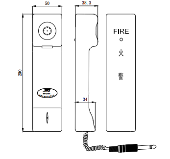 外形尺寸 | 手提式电话分机为:200mm×50mm×38.3mm 固定式电话分机为:206mm×56mm×51.5mm |